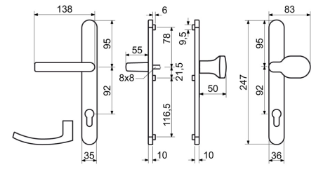 Dodávané štandardne pre hrúbku dverí: RHD.0040 77-84 mm a 60-64 mm
