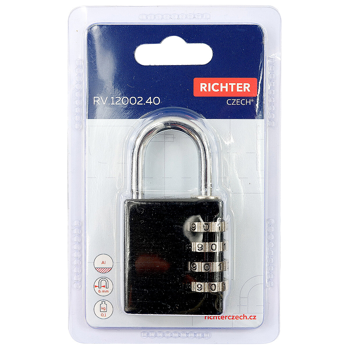 Hliníkový kódový visiaci zámok Richter RV.12002.40.CRN