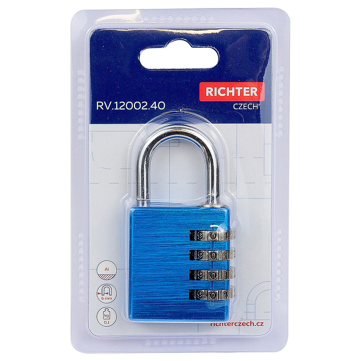 Hliníkový kódový visiaci zámok Richter RV.12002.40.MOD