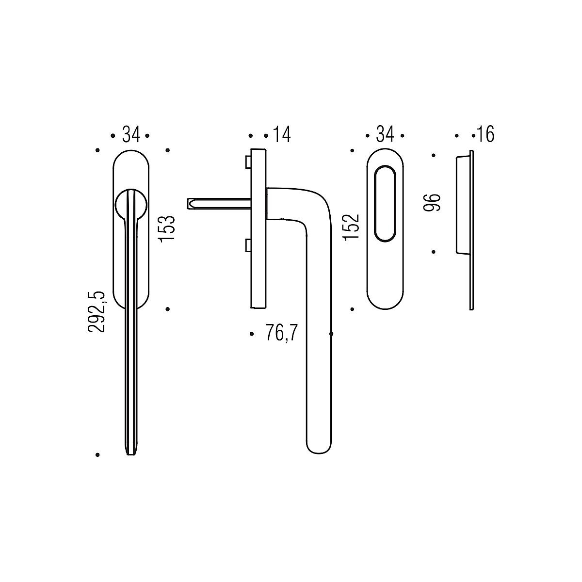 Kľučka má dĺžku 292,5 mm.