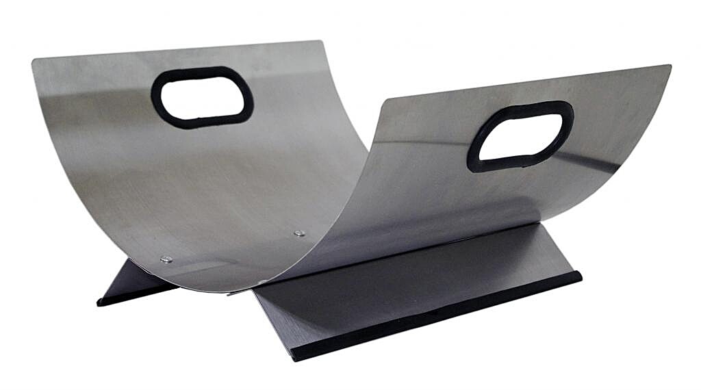 Kvalitný nerezový kôš na drevo s plastovým lemom a stojanom.