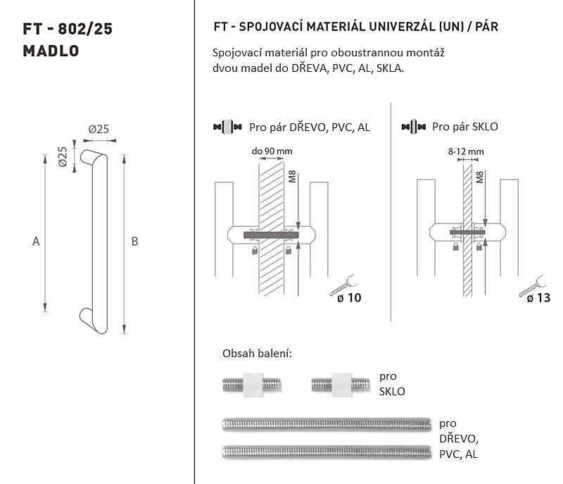 DVERNÉ MADLO MP kód K02 Ø 25 mm UN (BS - Čierna matná) - pár