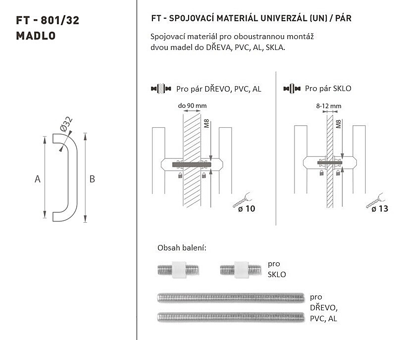DVERNÉ MADLO MP kód K01 Ø 32 mm UN - pár (BS - Čierna matná)
