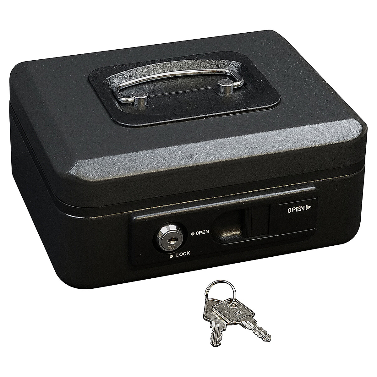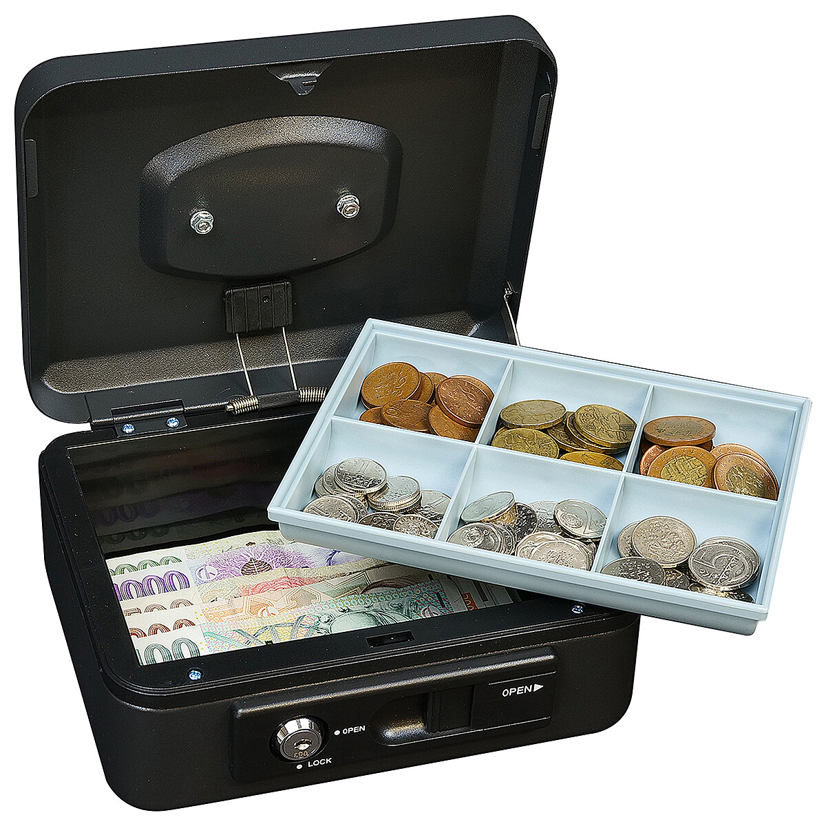 Pokladnička z ocele je vybavená vonkajšou páčkou pre pohodlné automatické otvorenie veka. Po uzavretí sa veko automaticky aretuje, čo umožňuje bezpečné prenášanie, bez nutnosti uzamknutia kľúčom.