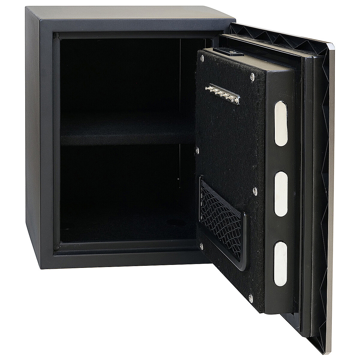Oceľový trezor v protipožiarnom prevedení s elektronickým zámkom na odtlačok prsta a číselným kódom