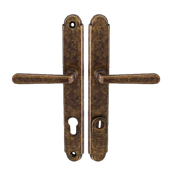 Štítová kľučka na vchodové a bezpečnostné dvere so spevneným rustikálnym štítom s prekrytím cylindrickej vložky je vyrobená z materiálov vysokej kvality - mosadz a je povrchovo upravená. Rustikálny štít má rozmery 38 mm x 280 mm a hrúbku 11 mm.