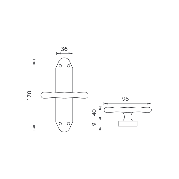 Rázvora na drevené okno s rustikálnou rozetou je vyrobená z materiálov vysokej kvality - mosadz a je povrchovo upravená. Rozeta má rozmery 36 mm x 170 mm a hrúbku 9 mm.