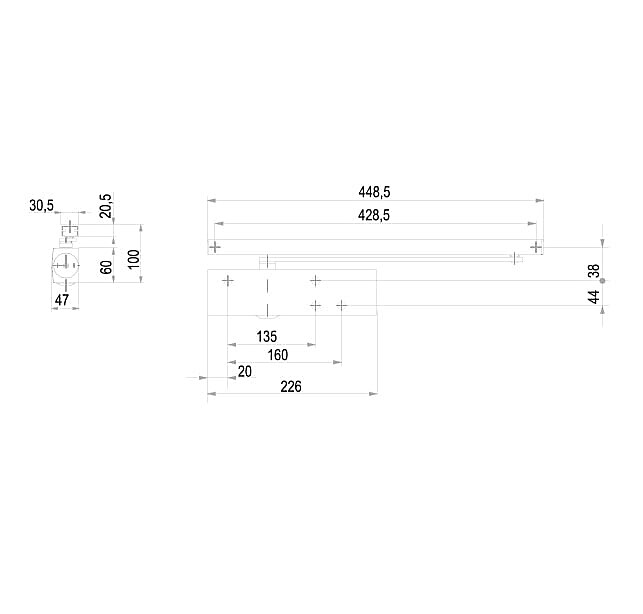 Odporúčaná váha dverného krídla podľa STN EN 1154 je pre tento samozatvárač 80 kg.