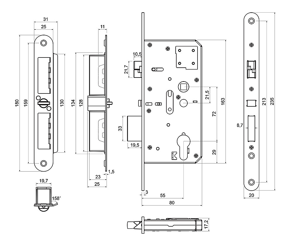 • Protiplech obsahuje špeciálny odpružený protikus pomocnej strelky zámku.