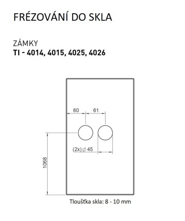 Zámok je vhodný pre sklenené dvere s hrúbkou 8 – 10 mm. Otvor pre kľučku obsahuje vymedzovací mechanizmus pre maximálne eliminovanie vôle štvorhranu. Mechanizmus zámku umožňuje nastavenie sily pružiny a napomáha udržovaniu kľučky v horizontálnej polohe.