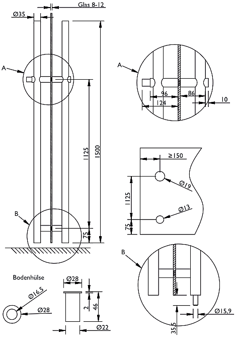 pár na sklenené dvere Prevedenie: |